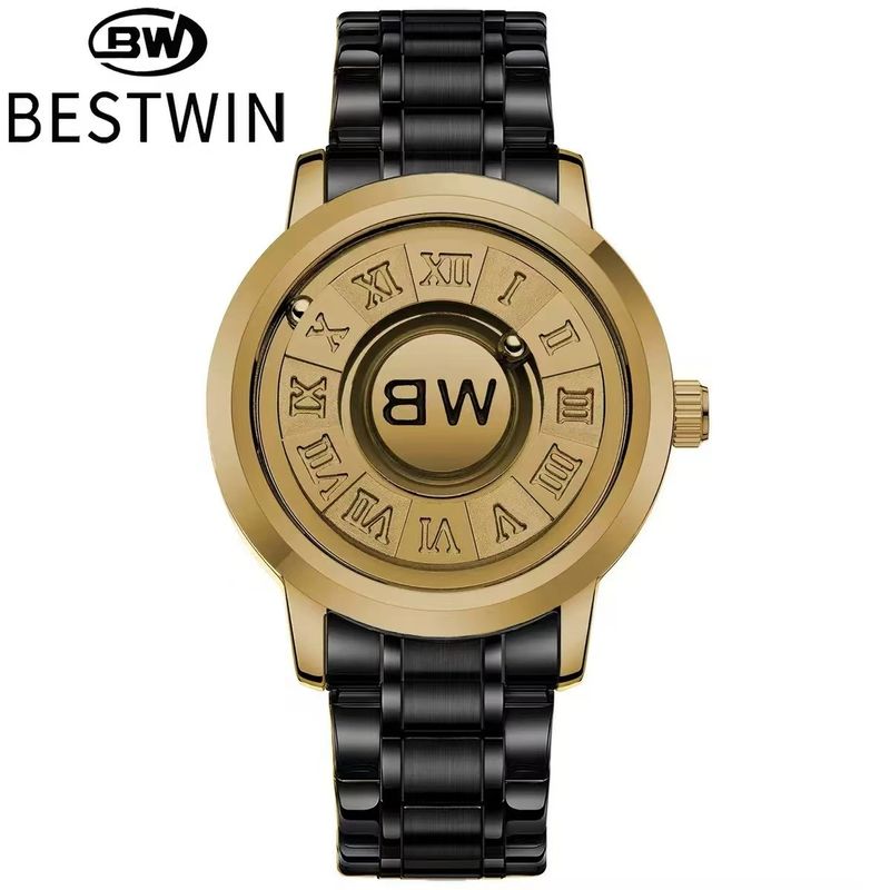 - Full hero image: Gold-tone magnetic levitation watch with stainless steel bracelet