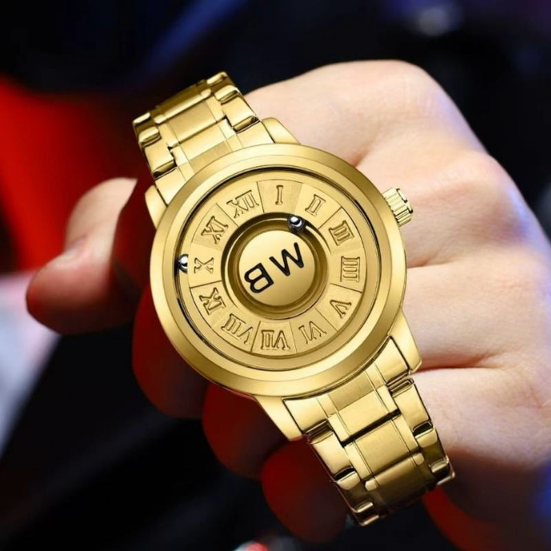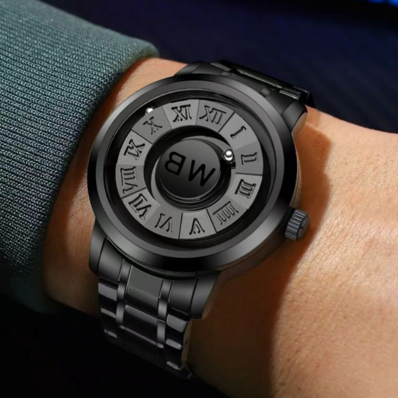 A watch that redefines timekeeping—no hands, no glass, just floating magnetic balls and bold Roman numerals.