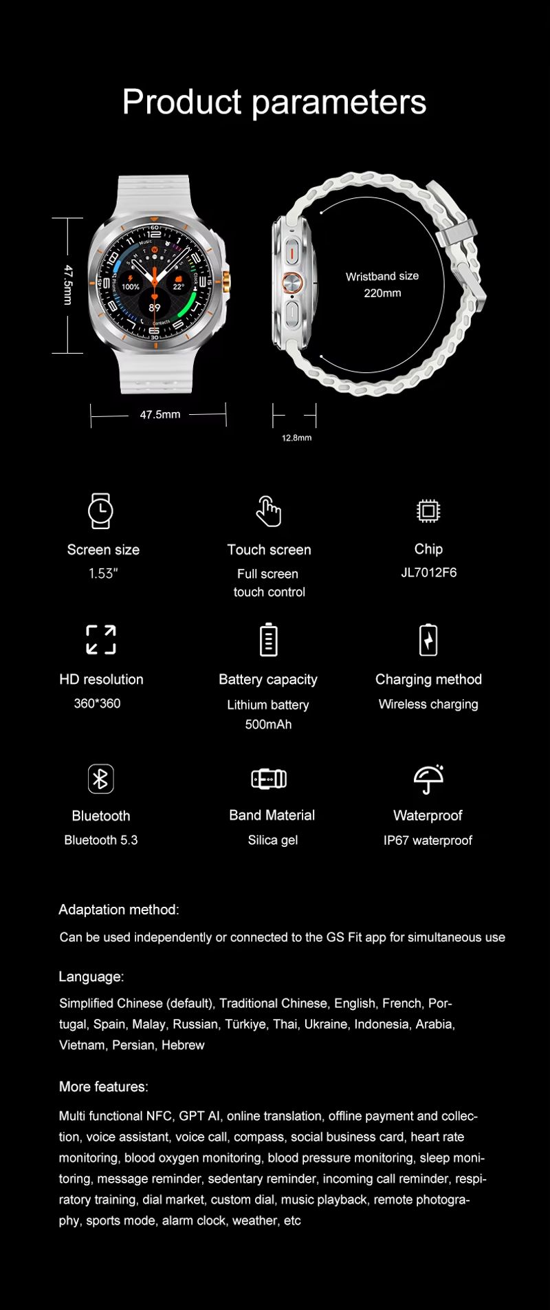 That 1.53" HD display? Sharp enough to show off your favorite photos, and bright enough to read even in the blazing Ghanaian sun! 🌞 No need for daily charging—the 500mAh battery lasts up to 10 days, and wireless charging is as easy as putting it down.